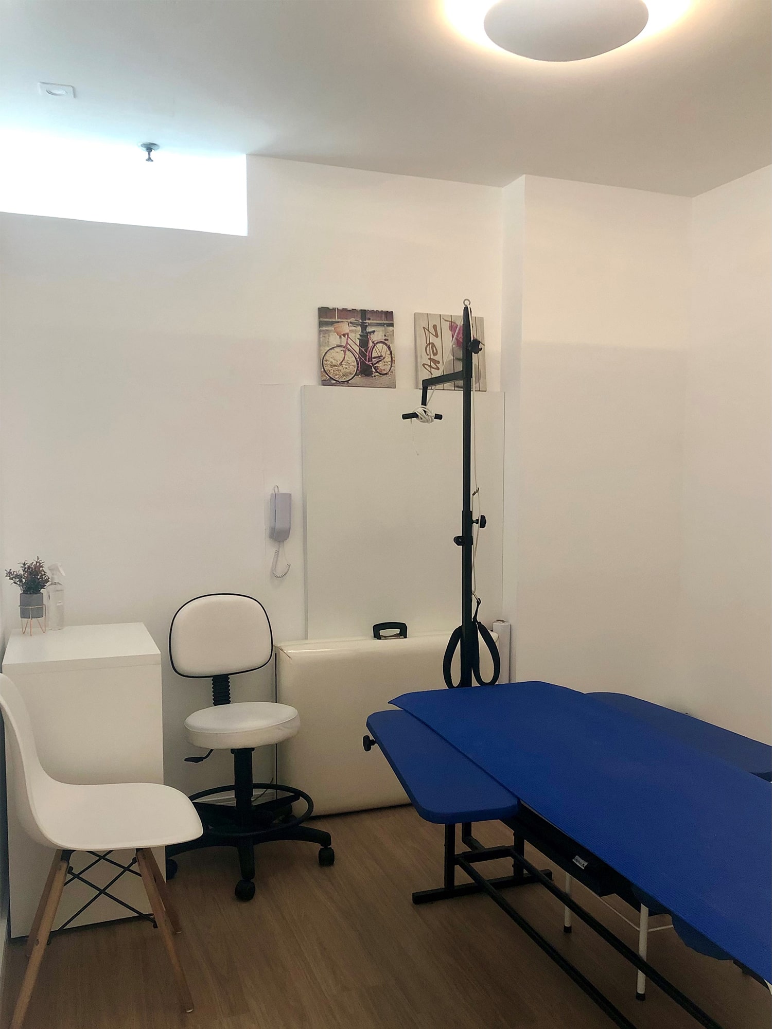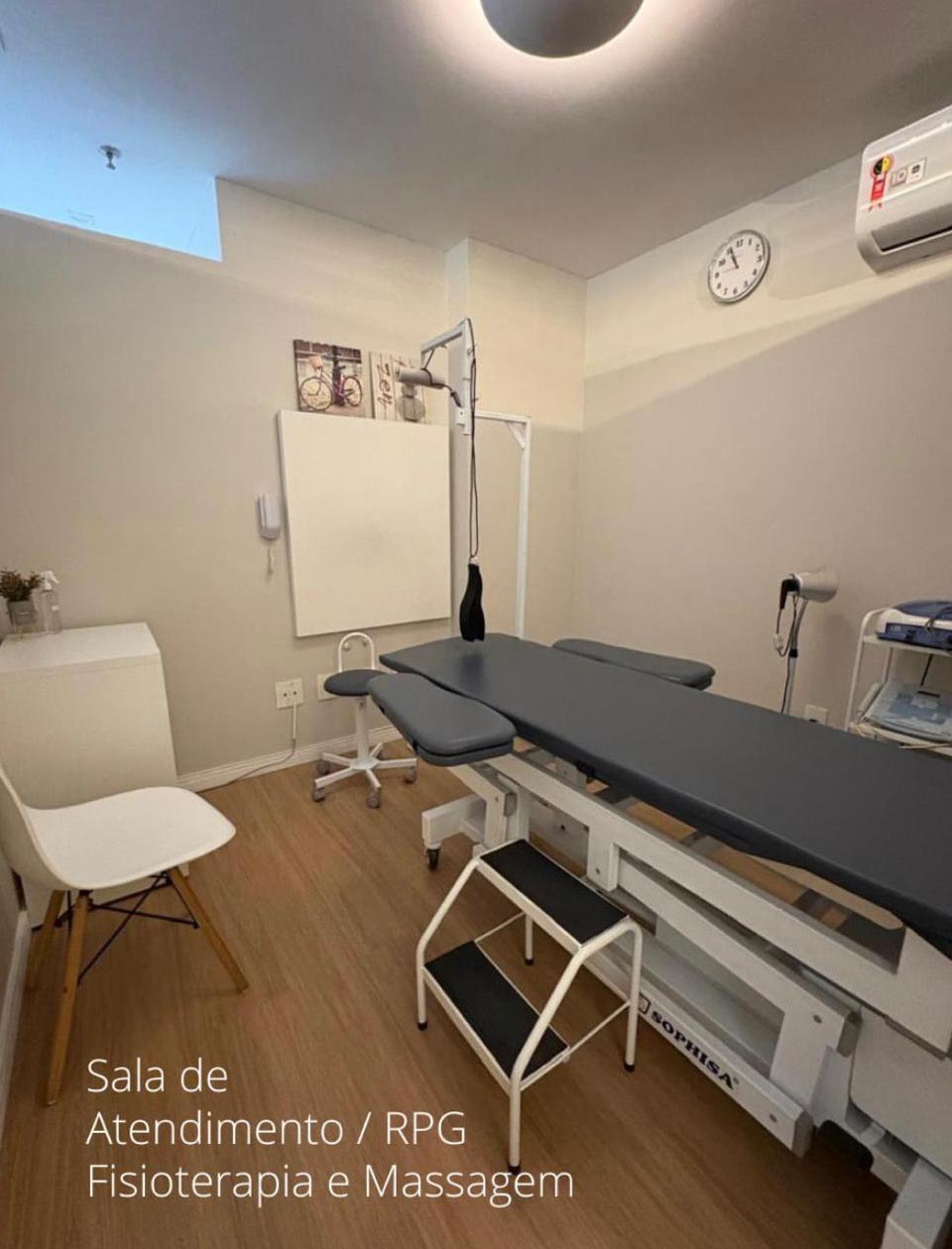 A sessão de Fisioterapia Convencional inclui aparelhos (TENS, Infravermelho, Laser, Ultra-som), Terapias manuais, Cinesioterapia (exercícios).